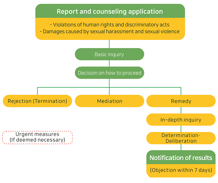 • Reporting, counseling, and remedies for victims of human rights violations, sexual harassment, and sexual violence.